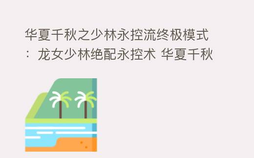 摘要:詳解華夏千秋游戲中少林永久控制流的搭配技巧、核心招式及實戰策略。,華夏千秋之少林永控流終極模式:龍女少林絕配永控術 華夏千秋什么意思