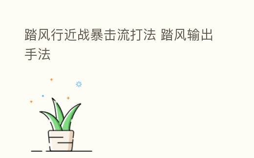 上面就是小編同享帶來新人前中期踏風行近戰暴擊流打法如何操作?學會了踏風行暴擊流高傷害打法策略,接下來暴擊流的打法在技能組合上也有一定標準,這就需要玩家們去尋覓了,希望我的同享能給大家一點點的幫助。