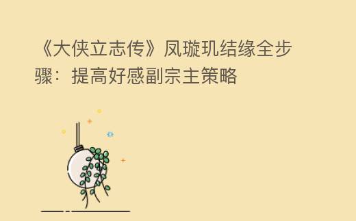 摘要:本文詳細介紹了在游戲《大俠立志傳》中與鳳璇璣結緣的方法和步驟,包括好感度提升和劇情關鍵點。,《大俠立志傳》鳳璇璣結緣全步驟:提高好感副宗主策略