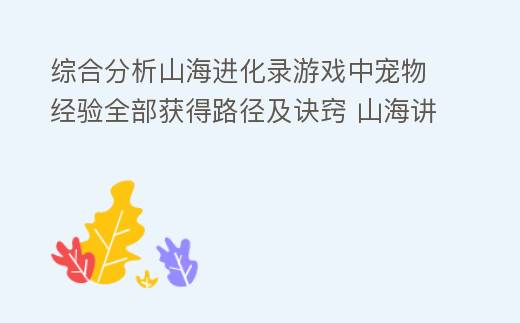 摘要:本攻略分享了《山海進化錄》中寵物經驗的高效獲取途徑,包括升級技巧、戰斗策略和強力寵物推薦,幫助玩家快速提升寵物等級。,綜合分析山海進化錄游戲中寵物經驗全部獲得路徑及訣竅 山海講的什么意思