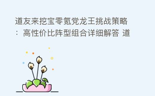 摘要:零氪玩家專屬龍王副本通關攻略,詳解陣容配置與養成技巧,助你輕松戰勝高難度BOSS,道友來挖寶零氪黨龍王挑戰策略:高性價比陣型組合詳細解答 道友來挖寶零氪攻略