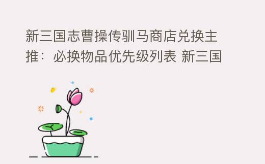 摘要:深度解析新三國志曹操傳馴馬商店的優先兌換策略,推薦神品坐騎碎片、裝備轉換石等高性價比道具,包含軍功計算和賽馬進階技巧。,新三國志曹操傳馴馬商店兌換主推:必換物品優先級列表 新三國志曹操傳論壇