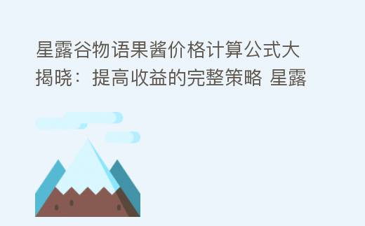 摘要:詳解星露谷物語中果醬價格的計算公式、品質提升策略和影響因素,包括水果基礎價、糖類作用、發酵桶優化及市場動態,幫助玩家高效賺取金幣。,星露谷物語果醬價格計算公式大揭曉:提高收益的完整策略 星露谷物語果醬制作時間