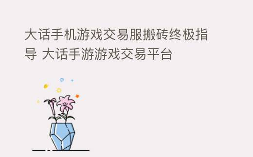 摘要:詳解大話西游手游交易服高效搬磚技巧,包含沖級路線、特權卡解析及限時活動參與指南,助你快速賺取游戲資源。,大話手機游戲交易服搬磚終極指導 大話手游游戲交易平臺