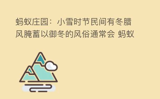 付款寶螞蟻莊園小課11月22日的其中壹個(gè)難題是:小雪時(shí)節(jié),民間有“冬臘風(fēng)腌,蓄以御冬”的風(fēng)俗,通常會(huì)?這道題考查冬臘風(fēng)腌有關(guān)的姿勢(shì),下面一起來(lái)看一下螞蟻莊園11月22日的正確答案吧。