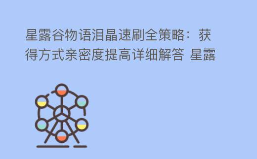 摘要:本文詳細介紹了《星露谷物語》中淚晶的獲取方法和核心用途,以游戲攻略風(fēng)格提供偽原創(chuàng)指南。,星露谷物語淚晶速刷全策略:獲得方式親密度提高詳細解答 星露谷物語淚晶怎么用