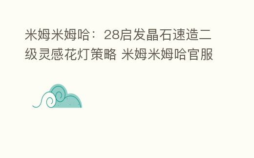 摘要:詳細解析米姆米姆哈手游二級靈感花燈建造全流程,涵蓋晶石獲取攻略、米姆部署策略及材料升級技巧,附帶速通與長效雙方案。,米姆米姆哈:28啟發晶石速造二級靈感花燈策略 米姆米姆哈官服