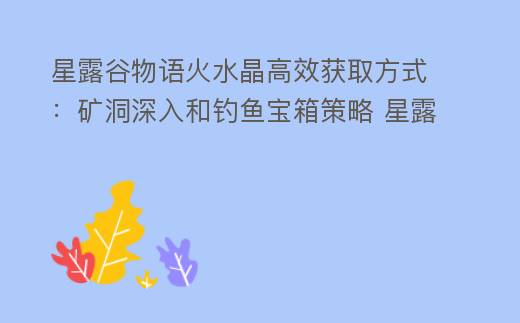 摘要:詳細(xì)解析星露谷物語中三種高效獲得火水晶的方法:深層礦洞挖掘技巧、釣魚寶箱開啟秘訣、巨大晶洞采集指南,助力玩家快速收集珍貴礦石資源。,星露谷物語火水晶高效獲取方式:礦洞深入和釣魚寶箱策略 星露谷物語火水晶怎么獲得