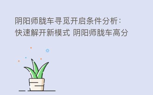 希望這篇策略能幫你輕松上手朧車尋覓,快去游戲中嘗試吧!更多新鮮游戲資訊和實(shí)用訣竅,盡在游戲網(wǎng),助你成為陰陽師大師。
