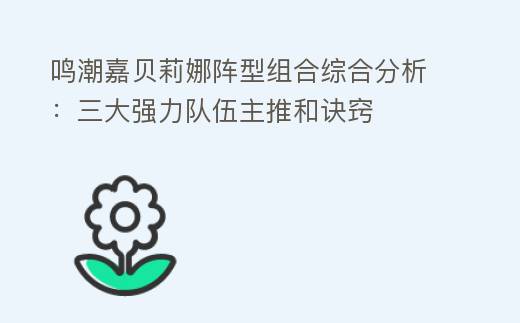 在《鳴潮》游戲中,嘉貝莉娜作為新登場(chǎng)的五星熱熔屬性人物,憑借其超距離佩槍攻擊和強(qiáng)悍的火傷輸出,成為許多玩家關(guān)注的焦點(diǎn)。不少小伙伴都在詢問(wèn)怎樣為嘉貝莉娜組合合適的陣型,以最大化她的戰(zhàn)斗潛力。別擔(dān)心,本策略將為你詳細(xì)解析幾種高效配隊(duì)方法,確保你在戰(zhàn)斗中如虎添翼。