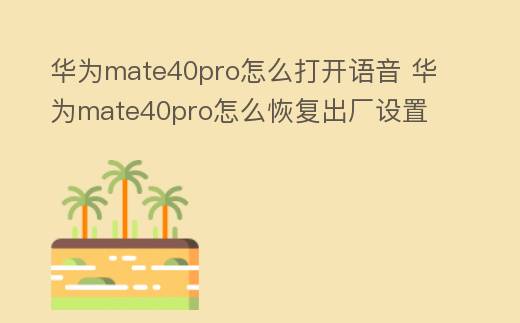 摘要:華為推出了mate40pro這款手機,手機的功能配置相當的豐富,吸引了不少朋友們的關注哦。估計還有很多朋友都很疑惑華為mate40pro如何打開語音,下文就是小,華為mate40pro怎么打開語音 華為mate40pro怎么恢復出廠設置
