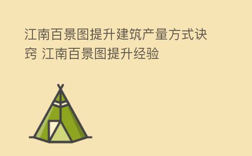 摘要:江南百景圖中不同的建筑產量也不同,中期需要建造各種建筑來積累資源,那么江南百景圖建筑產量怎么提升?下面小編給大家帶來了江南百景圖提高建筑產量方法技巧,一起來看看吧。,江南百景圖提升建筑產量方式訣竅 江南百景圖提升經驗
