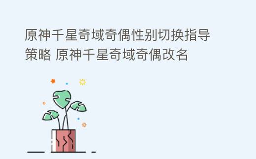 摘要:本指南詳細講解原神千星奇域中如何切換奇偶的性別,包括簡單步驟和實用提示,助力玩家輕松上手游戲。,原神千星奇域奇偶性別切換指導策略 原神千星奇域奇偶改名