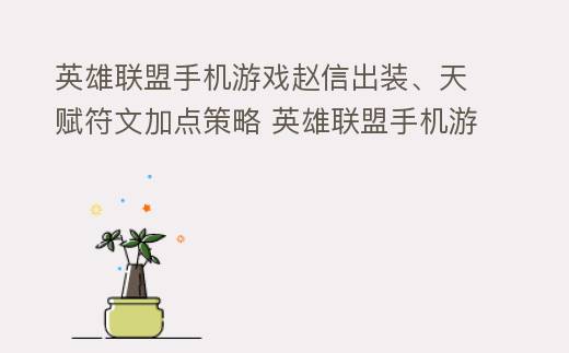 以上就是lol趙信出裝、天賦符文加點策略,更多精妙lol手機游戲出裝策略,盡情關注下載家園。