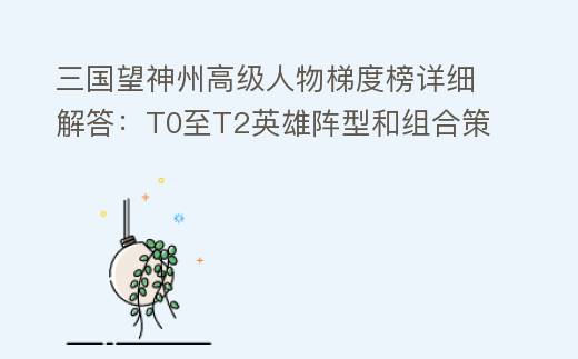 摘要:本文對三國望神州手游的角色強度梯度榜進行全面偽原創,解析T0和T1英雄的天賦技能優勢,適合玩家參考優化陣容搭配。,三國望神州高級人物梯度榜詳細解答:T0至T2英雄陣型和組合策略