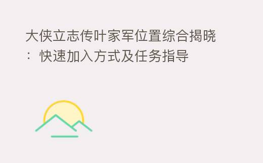 在《大俠立志傳》這款游戲中,葉家軍作為核心陣營其中一個,為玩家提供特殊的任務(wù)和豐厚獎勵,不少玩家正努力尋找其所在地。下面是一份詳細(xì)的游戲策略,助你快速定位并加入葉家軍。