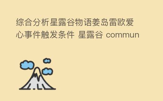 摘要:本文提供星露谷物語雷歐NPC的愛心事件大全攻略,詳細解釋各心數事件的觸發時間、地點和獎勵,幫助玩家高效提升好感度。,綜合分析星露谷物語姜島雷歐愛心事件觸發條件 星露谷 community center