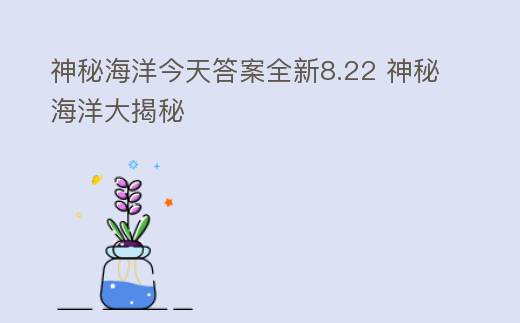 摘要:螞蟻森林神奇海洋中里面最開始有個五個場景,分別為褪色的珊瑚王國、嶙岣的礁石海灘、洄游生物的庭院、魚與漁之歌、神秘的海上走廊,需要玩家一一解鎖,那么小編就為大家整理出了螞蟻森林神奇海洋答題海洋知識一起來看看吧!,神秘海洋今天答案全新8.22 神秘海洋大揭秘