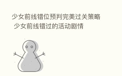 以上就是少女前線錯位預判通關策略,更幾許女前線精妙內容,敬請關注掌游網手機游戲網。