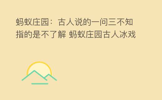 摘要:支付寶螞蟻莊園小課堂1月8日的其中一個問題是:猜一猜:古人說的“一問三不知”,指的是不知道?這道題考查了關于一問三不知的知識,下面一起來看一下螞蟻莊園1月8日的正確答案吧。,螞蟻莊園:古人說的一問三不知指的是不了解 螞蟻莊園古人冰戲