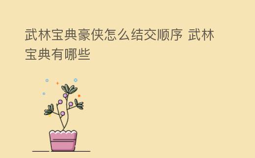 摘要:在浩瀚的武俠世界中,結交各路豪俠是每位玩家的必經之路。這不僅能大幅提升實力,更能豐富游戲體驗。接下來,讓我們一起探討武林秘籍中的豪俠結交順序及其攻略。,武林寶典豪俠怎么結交順序 武林寶典有哪些