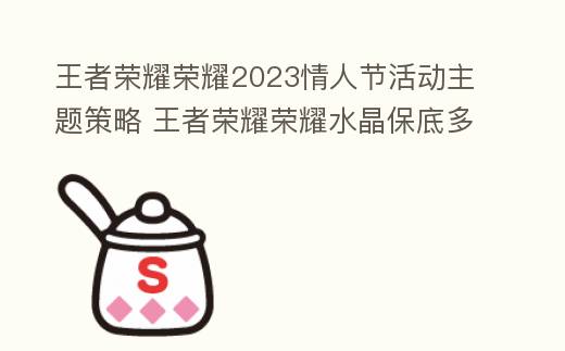 摘要:王者榮耀即將上線2023年情人節的活動,屆時玩家可以看到返場的皮膚,參與活動也可獲得相應的獎勵,感興趣的玩家可以參考一下本篇攻略,下面會有詳細的內容。,王者榮耀榮耀2023情人節活動主題策略 王者榮耀榮耀水晶保底多少