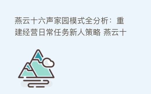 摘要:詳細解析燕云十六聲游戲的家園系統玩法,包括重建任務、經營策略和日常活動,助玩家高效上手江湖經營。,燕云十六聲家園模式全分析:重建經營日常任務新人策略 燕云十六聲家園玩法