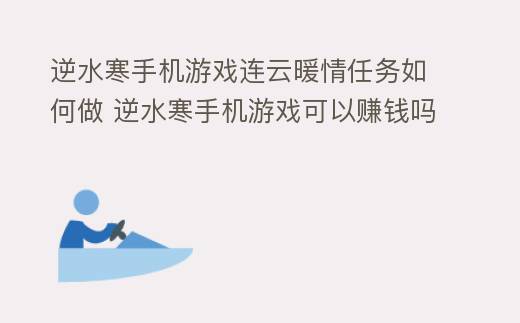 摘要:逆水寒手游里的任務玩法體系十分豐富,玩家在其中可以玩到各式不同的任務,而每一種任務所帶來的趣味性都不一樣,當然在完成方法上也是不同的,而本次所帶來的是連云暖情任務完成方法,玩家在進行這項任務時,就結合所給的方法去進行了。,逆水寒手機游戲連云暖情任務如何做 逆水寒手機游戲可以賺錢嗎