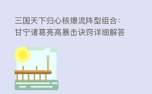 摘要:本文詳細解析《三國:天下歸心》游戲中核爆流玩法的核心陣容、技能效果和實戰技巧,幫助玩家掌握高傷害輸出策略并輕松應對各種副本挑戰。,三國天下歸心核爆流陣型組合:甘寧諸葛亮高暴擊訣竅詳細解答 三國:天下歸心