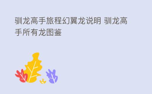 摘要:馴龍高手旅程幻翼龍是遠(yuǎn)程輔助手類型的,有兩項(xiàng)比較突出的屬性,技能的傷害輸出效果也很不錯(cuò),選擇合適的角色和她進(jìn)行搭配可以在戰(zhàn)斗中打出更強(qiáng)的輸出。,馴龍高手旅程幻翼龍說明 馴龍高手所有龍圖鑒