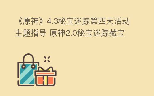 《原神》4.3版本的秘寶迷蹤第四天活動主題已經開始,很多玩家兄弟們想要了解一下活動主題的藏寶點位在哪里,小編這里就為大家同享一下4.3秘寶迷蹤第四天活動主題指導,感興趣想要了解的玩家兄弟們不妨一起來看一下吧!