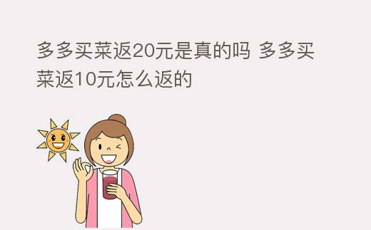 摘要:在多多買菜里有一個滿20元返20元的優惠活動,但是有的朋友擔心它的真實性不敢下單使用,其實這個活動確實是真實的,但是返還的20元零錢是無法直接使用的。,多多買菜返20元是真的嗎 多多買菜返10元怎么返的