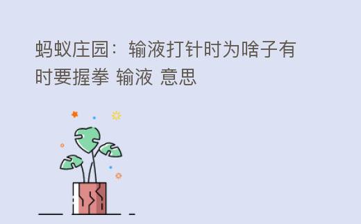 摘要:支付寶螞蟻莊園小課堂3月3日的其中一個問題是:輸液打針時,為什么有時要握拳?這道題考查了打針的知識,下面一起來看一下螞蟻莊園3月3日的正確答案吧。,螞蟻莊園:輸液打針時為啥子有時要握拳 輸液 意思