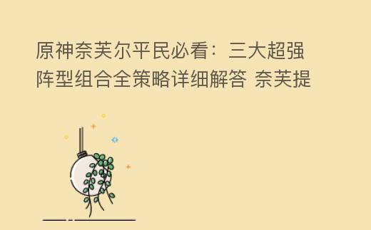 摘要:針對零氪玩家詳解奈芙爾三大實戰陣容搭配方案,包含角色定位解析與操作技巧,原神奈芙爾平民必看:三大超強陣型組合全策略詳細解答 奈芙提斯