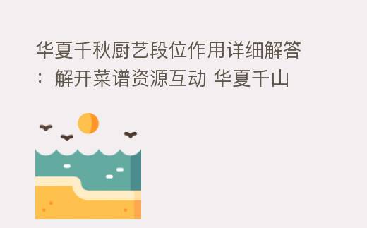 摘要:深度解析《華夏千秋》廚藝段位系統,涵蓋菜譜解鎖機制、珍稀資源獲取技巧、隱藏劇情觸發條件及快速升級攻略,幫助玩家高效提升烹飪等級。,華夏千秋廚藝段位作用詳細解答:解開菜譜資源互動 華夏千山