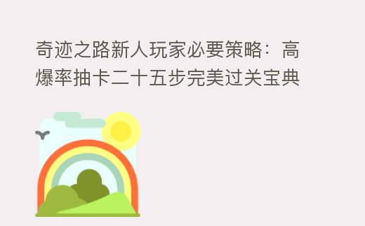 摘要:本文提供奇跡之路游戲的萌新高效攻略,涵蓋角色選擇、任務流程、裝備升級和難度策略,幫助新手快速上手并穩定通關。,奇跡之路新人玩家必要策略:高爆率抽卡二十五步完美過關寶典 奇跡之露哪里買