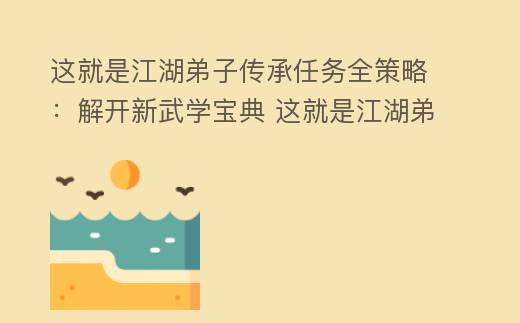 摘要:這就是江湖弟子傳承任務全攻略詳解,涵蓋任務激活條件、四大任務類型解析及實戰闖關技巧,助少俠快速提升弟子戰力解鎖武林絕學。,這就是江湖弟子傳承任務全策略:解開新武學寶典 這就是江湖弟子武器怎么弄