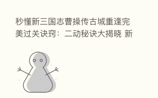 摘要:本文提供新三國志曹操傳中古城重逢關卡的偽原創攻略指南,幫助玩家高效通關高難度挑戰。,秒懂新三國志曹操傳古城重逢完美過關訣竅:二動秘訣大揭曉 新三國 曹節
