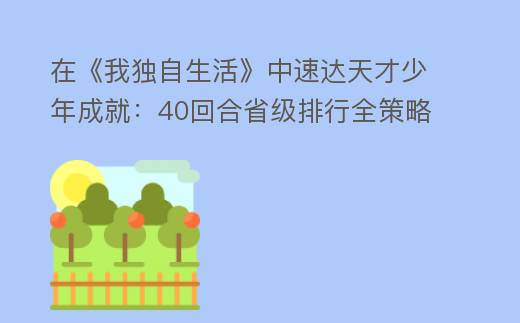 摘要:本指南詳解如何在《我獨自生活》游戲中40回合內快速達成天才少年成就,包括前期資金積累、中期升級策略和后期裝備強化等關鍵步驟,幫助玩家高效提升排名。,在《我獨自生活》中速達天才少年成就:40回合省級排行全策略 我獨自生活 iu