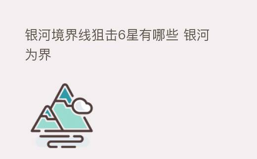 在游戲當中,狙擊手這個職業一發子彈的威力,相信兄弟們都是有目共睹的,在狙擊手這個職業當中,那么人物也是有星級的區分的,銀河境界線狙擊6星有哪些呢,游戲當中不用說肯定是星級越高狙擊職業的能力就越強,那么六星的狙擊手都有哪多少呢,本篇文章就和兄弟們盤點一下游戲當中那些六星的狙擊手們。
