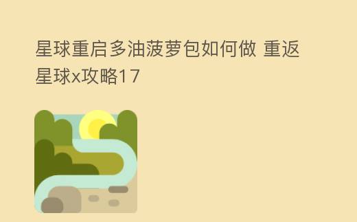 摘要:在現實世界中,菠蘿就是人見人愛水果,并且廣泛應用于烹飪中,這點在星球重啟中也得到了非常真實再現。玩家可以使用菠蘿制作很多美味烹飪,多油菠蘿包就是其中一種,今天就來看下星球重啟多油菠蘿包怎么做。這種曾經風靡世界的甜味面包,烘培之后以自己優質外觀和味道而著稱。這是一款只需要兩種食材就可以制作出來的簡單,星球重啟多油菠蘿包如何做 重返星球x攻略17