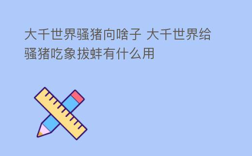 摘要:大千世界手游是一款非常優秀的國產游戲,近期很多玩家都在詢問騷豬任務該怎么做,能獲得什么獎勵,今天就為大家帶來關于這個方面的攻略,一起來看看吧。,大千世界騷豬向啥子 大千世界給騷豬吃象拔蚌有什么用