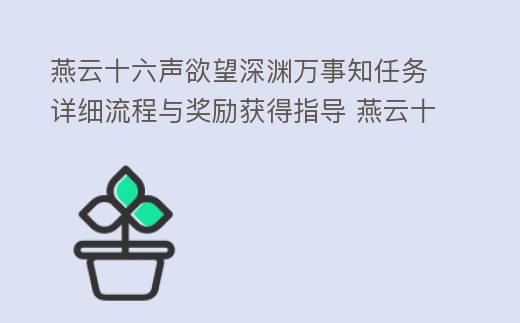 摘要:這是一篇偽原創的游戲攻略,針對《燕云十六聲》中欲望深淵任務的詳細步驟和獎勵進行了清晰闡述,保持原作核心思想的同時優化表達。,燕云十六聲欲望深淵萬事知任務詳細流程與獎勵獲得指導 燕云十六騎 小說