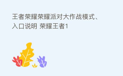 以上就是小編為大家帶來的關于王者派對大作戰方法、入口說明的內容同享,更多精妙內容敬請關注本站,即可在第一時刻獲取新鮮相關內容。