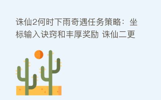 摘要:本文詳細解析誅仙2游戲中何時下雨奇遇任務的完成步驟,包括坐標位置、激活方式和獎勵詳情,幫助玩家高效獲取道具。,誅仙2何時下雨奇遇任務策略:坐標輸入訣竅和豐厚獎勵 誅仙二更新到多少章